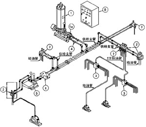一、系統介紹 由換向閥 1a 的位置決定潤滑泵①輸出的潤滑劑經兩條供油主管的某一條供送,另一條向貯油器開放。 雙線分配器②全部動作完畢,供油壓力急劇上升。可用供油壓力是否達到預先確認的數值來判斷系統給油工作是否已經完成。 系統再次進行給油運行時,換向閥 1a 處于相反位置,此時供油主管壓送和開放交換。 二、特 點 系統簡單,設備費用低。 適用于給油間隔時間長,潤滑點少的場合。 也可與其它系統配合,潤滑某些特殊的部位。 |