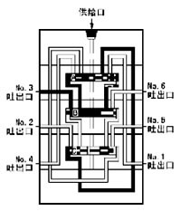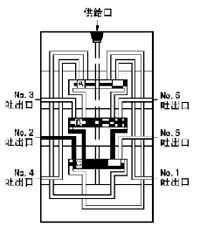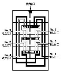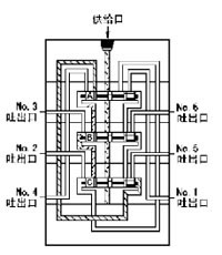 6、流入的潤滑劑推動活塞B向右運動、右腔的潤滑劑壓向NO.5吐出口,經(jīng)外部配管送向潤滑點。當(dāng)活塞B移動到至右極限時活塞A左腔開始進(jìn)入潤滑劑。