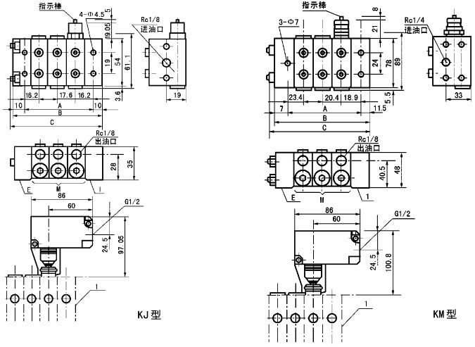 KM-*不帶循環(huán)指示器和循環(huán)開關(guān)時尺寸參數(shù)表 |
