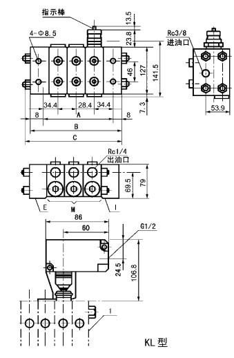 一、概述 KJ、KM、KL系列單線遞進(jìn)式分配器,適用于潤滑點密集、耗脂量不同,給油頻繁單線集中潤滑系統(tǒng)中,組成子母式分配系統(tǒng)實現(xiàn)分區(qū)控制進(jìn)行潤滑的場合。 KJ、KM、KL系列單線遞進(jìn)式分配器,它由中碳合金結(jié)構(gòu)鋼制造的供給體、端部體和3~8片根據(jù)設(shè)計需要所確定的給油量和出油口數(shù)的中間體組合而成。分配器的正常出口設(shè)置于分配器的兩側(cè)面,在上面還設(shè)置有預(yù)備出口,各中間體的出油口內(nèi)均裝有止回閥,能徹底防止因潤滑點背壓作用而產(chǎn)生潤滑脂的逆流,保證了各出油口的給油量定量、準(zhǔn)確。