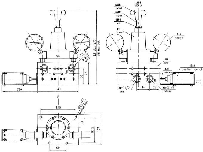 一、概 述 ZYP型液壓自動(dòng)換向閥是我廠吸收國(guó)外先進(jìn)技術(shù)、在同類產(chǎn)品DR4-5基礎(chǔ)上自行研制開發(fā)的新一代產(chǎn)品,它廣泛適用于冶金、化工、電力、水泥機(jī)械、建材機(jī)械、港口機(jī)械雙線干油集中潤(rùn)滑系統(tǒng)中,尤其適用于冶金行業(yè)快速離檢干油潤(rùn)滑系統(tǒng)、水泥機(jī)械環(huán)式潤(rùn)滑系統(tǒng)中。具有結(jié)構(gòu)緊湊、體積小、重量輕、外型美觀、操作方便、換向穩(wěn)定、壓力波動(dòng)值小、使用壓力等級(jí)高、性能可靠、壓力直觀、換向壓力可調(diào)等優(yōu)點(diǎn),代替了國(guó)內(nèi)20Mpa、40Mpa液壓換向閥、二位四通電磁閥、三位四通電磁閥,以及末端必需配備的壓力操縱閥、壓差開關(guān)、電氣管線配置等元件,組成干油潤(rùn)滑系統(tǒng),從而減少了系統(tǒng)故障、降低了投資成本。本閥可配置行程開關(guān)或接近開關(guān),從而實(shí)現(xiàn)整個(gè)系統(tǒng)的控制。 二、功能和結(jié)構(gòu)說(shuō)明 本閥為二位四通自動(dòng)液壓換向閥,上平面設(shè)有兩塊壓力表和調(diào)壓手輪。換向壓力由手輪調(diào)節(jié),順時(shí)針壓力升高,反之壓力降低。本閥門進(jìn)油口P與泵出油口連接,回油口R接貯油桶,供油口Ⅰ、Ⅱ分別與兩條供油管路連接。工作時(shí)當(dāng)Ⅰ路油壓達(dá)設(shè)定壓力,換向閥自動(dòng)切換到Ⅱ路,這樣潤(rùn)滑泵就能循環(huán)往復(fù)地向兩條管路供送潤(rùn)滑脂。