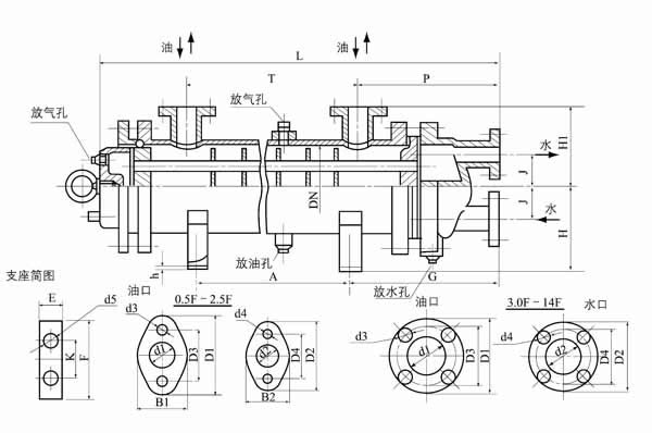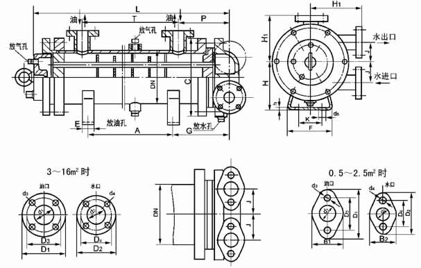 一、使用條件 與GLLQ型列管式冷卻器相似,產品適用于冶金、礦山、輕工、電力、化工等工業部門的液壓與潤滑裝置,將熱工作油冷卻到要求的溫度;冷卻器的設計最高溫度為100℃~120℃,工作壓力≤1.6MPa,傳熱系數為348~407w/m2.k,(若采用翅片管換熱,則傳熱系數為523~580W/m2·k,但允許介質粘度為10~50cSt)。下面列出的LQ型冷卻器則規定介質粘度為10~326cSt,主要技術參數如下表: |