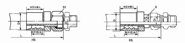 2、D1-接頭外套扣壓后直徑;Ⅰ、Ⅱ、Ⅲ - 膠管的鋼絲層數