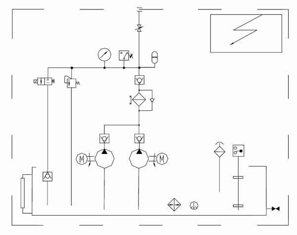 該站主要由油箱(帶電加熱器、液位計、電接點溫度計、空氣濾清器、液位控制器)、兩臺高壓油泵裝置(一備一用)、溢流閥、二位二通電磁閥、蓄能器、壓力控制器、過濾器、單向閥、壓力表等和PLC電氣控制箱組成。在電動機的牽引下油泵工作,從油箱內吸入潤滑油加壓排出,途徑單向閥、過濾器、蓄能器后向系統主管線供送。 正常工作時,一臺高壓油泵常開工作,另一臺備用,可通過電氣轉換開關來交替使用,并可通過按鈕開關人工啟動和停止油泵,PLC電氣控制箱對油氣系統實行程序化全自動控制,還可向主控室提供系統“運行”、“停止”、“故障”等遠程信號接口。 |